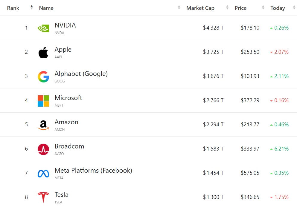 好意思股科技巨头涨跌不一,(按市值罗列)英伟达涨0.26%,苹果跌2.07%,谷歌C涨2.11%,微软跌0.16%,亚马逊涨0.46%,Meta涨0.35%,特斯拉跌1.75%。